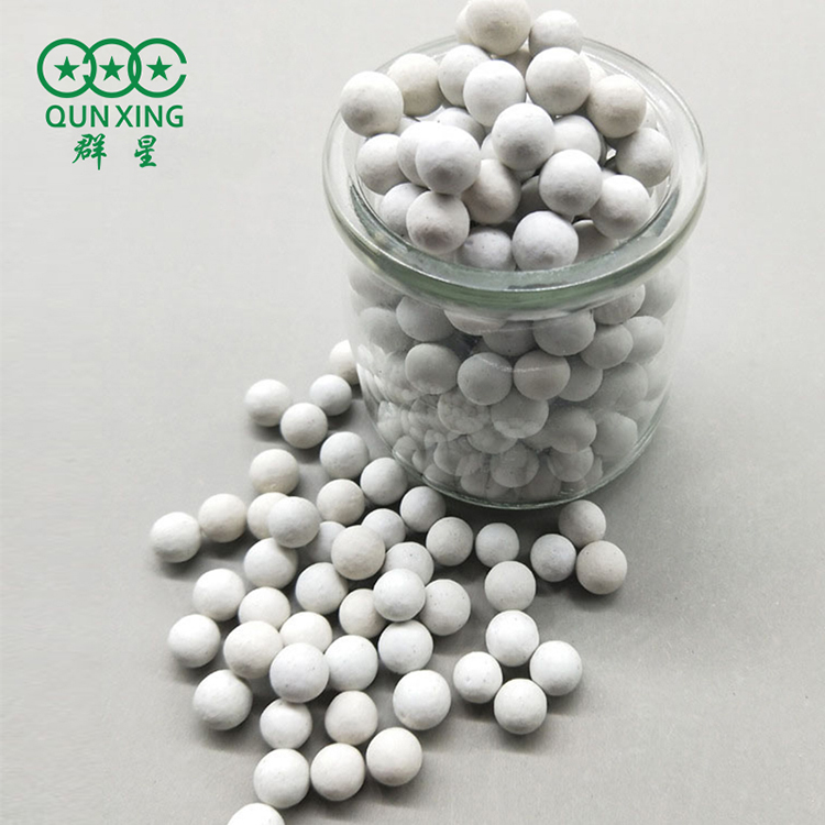 活性瓷球是在惰性瓷球中添加少量過渡金屬氧化物制成。活性瓷球既具有惰性瓷球的耐高溫、高壓和高機(jī)械強(qiáng)度的特性,起過濾、分散汽液覆蓋、支撐催化劑的作用,又具有一定的催化活性,在烯烴飽和、脫氮過種中起助催化作用。